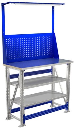 - Возможность дополнить верстак полкой (нагрузка 100 кг) и выдвижным ящиком (нагрузка 30 кг).