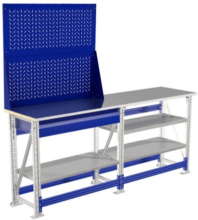 - Возможность дополнить верстак полкой (нагрузка 100 кг) и выдвижным ящиком (нагрузка 30 кг).