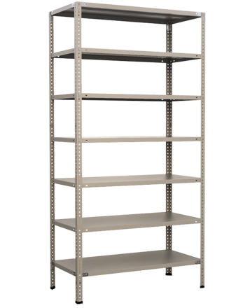 Конструктив металлического полочного стеллажа СТФ позволяет собирать, как отдельно стоящий стеллаж, так и многосекционный стеллаж, состоящий из основной секции и неограниченного числа дополнительных секций.