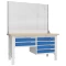 Модули верстака выполнены из холоднокатаной стали толщиной 0,8 мм. В верстаке возможна установка модулей шириной 480 мм и 680 мм. Имеется возможность установки вместо модуля полки-стенки либо использование подкатной тележки (мобильный модуль). Мобильный модуль имеет все четыре поворотные колесные опоры для более удобного маневрирования в небольших свободных пространствах.Возможна установка сверху модуля столешницы, аналогичной столешнице верстака, либо лотка. Максимальная масса груза распределённого по поверхности ящика до 40 кг, полки - до 60 кг. Модули оборудованы системой запирания.Регулировка по высоте